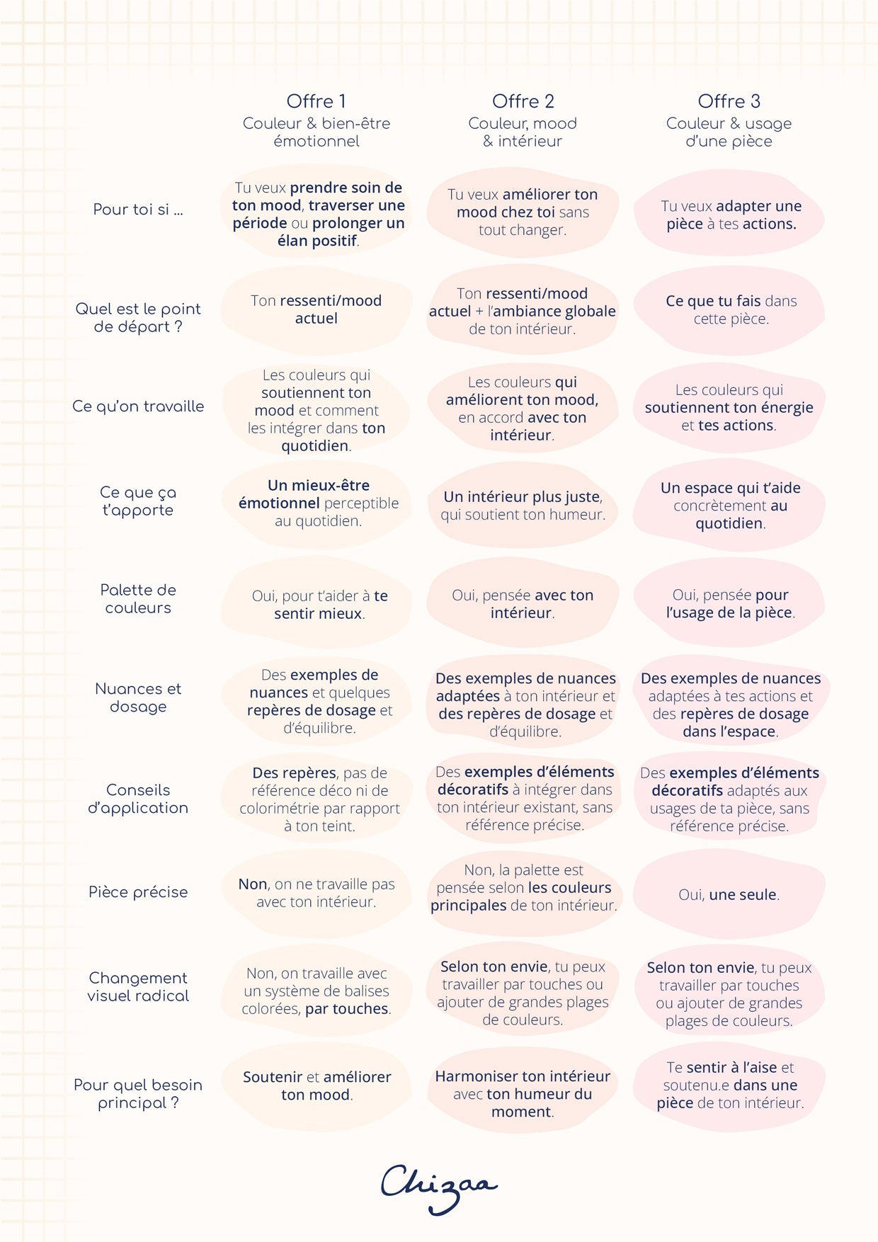 Chaque accompagnement couleur est construit à partir de toi : ton mood, tes besoins, ce que tu vis au quotidien.