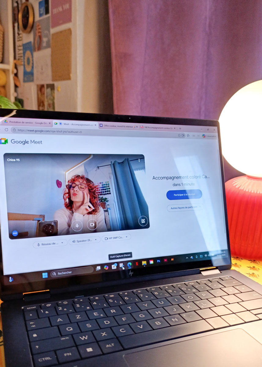 2 · L'appel visio (~1h15) : on creuse ensemble tes besoins, tes ressentis et tes goûts en matière de couleurs et de bien-être.