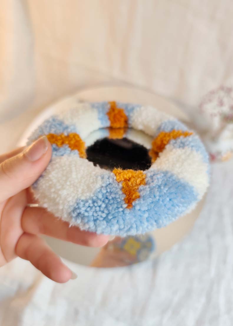 ⏳Le temps de création d’une décoration tuftée varie selon la taille et le niveau de détail du motif : un miroir main demande environ une heure, un miroir mural ou un petit tapis entre 1h30 et 3h.