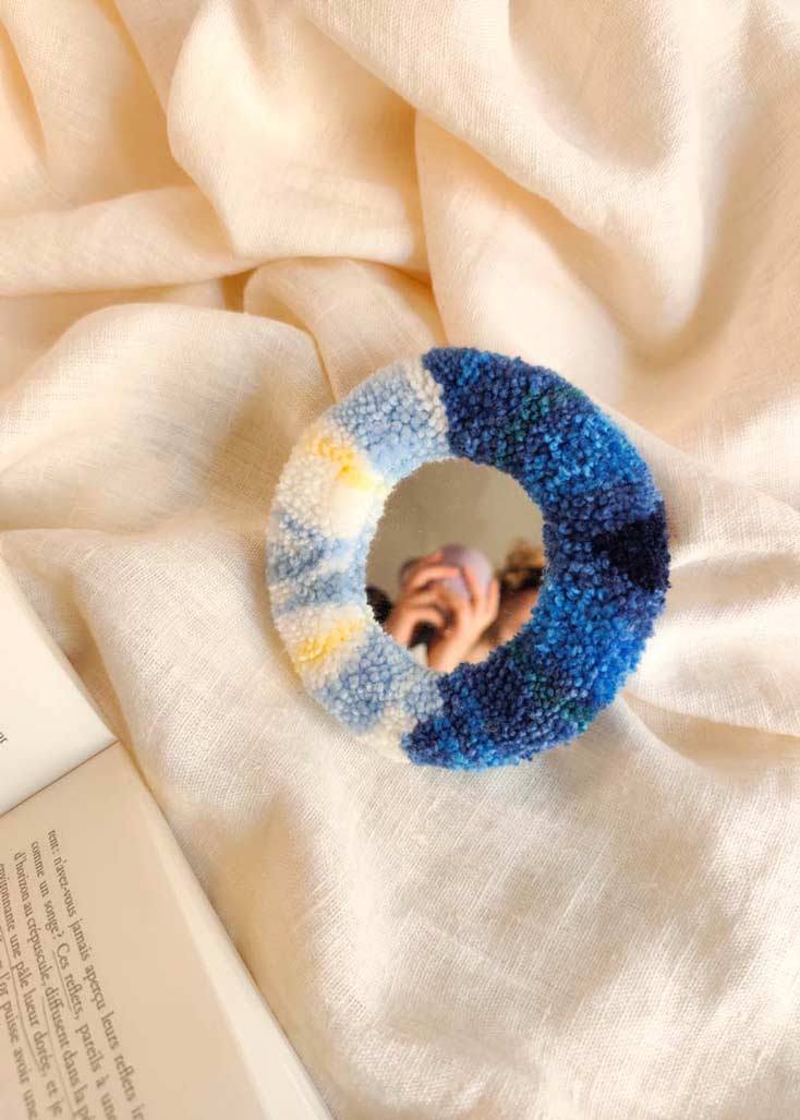 Miroir main tufté - madras bleu