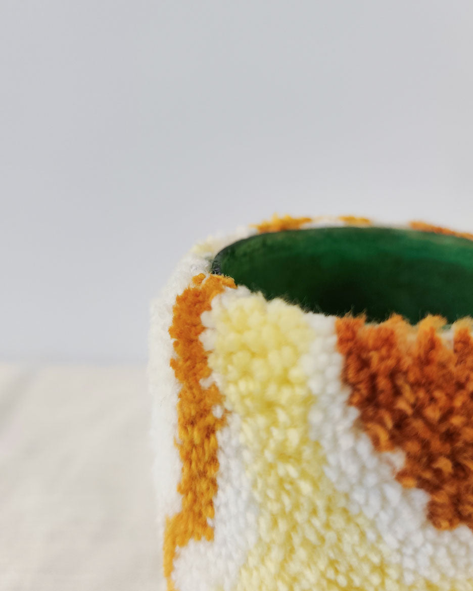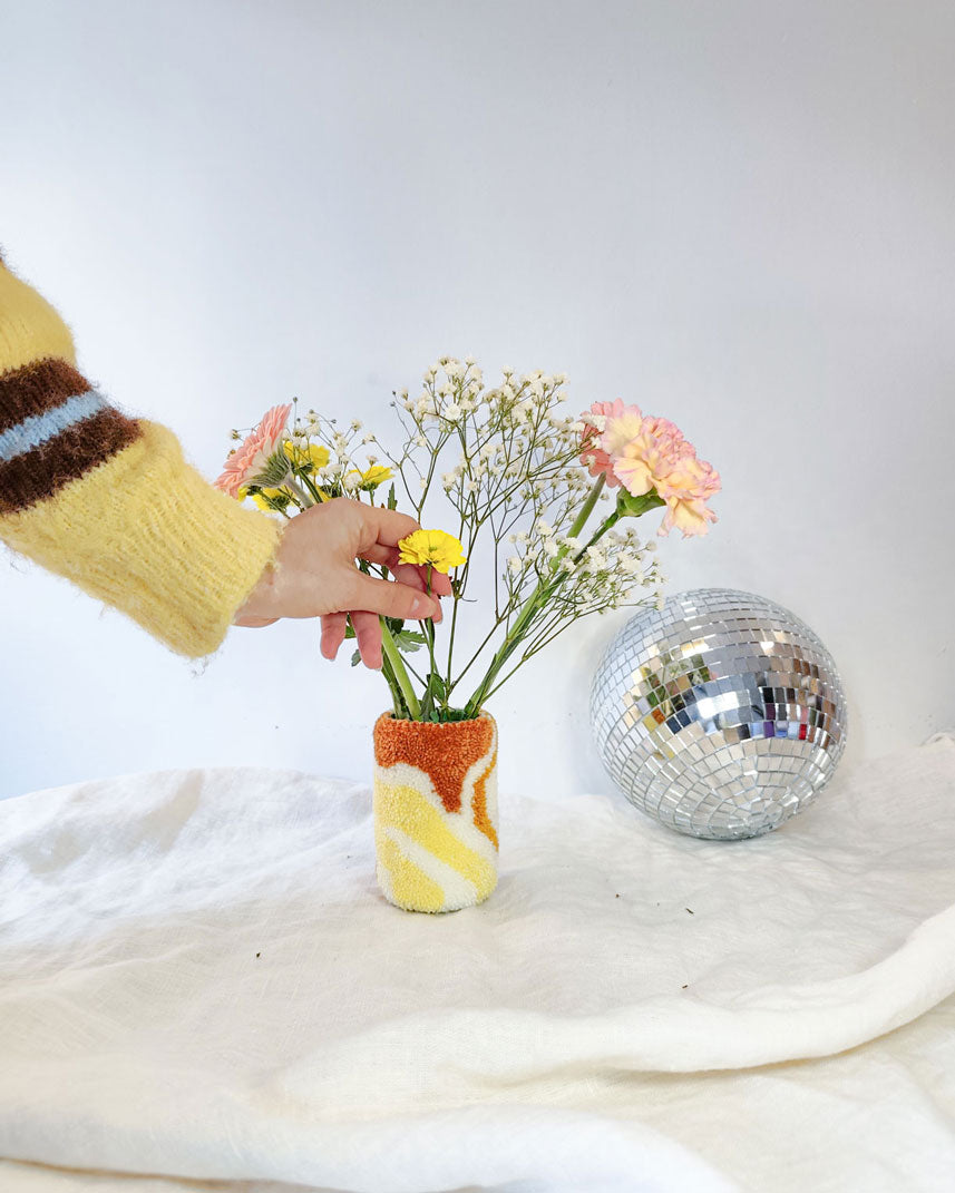 Vase tufté 12x8,5cm, ouverture 5,5cm Création 100% faite main dans mon atelier près de Paris 🧡 Composition :